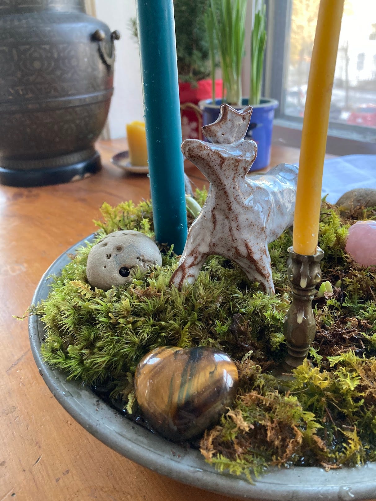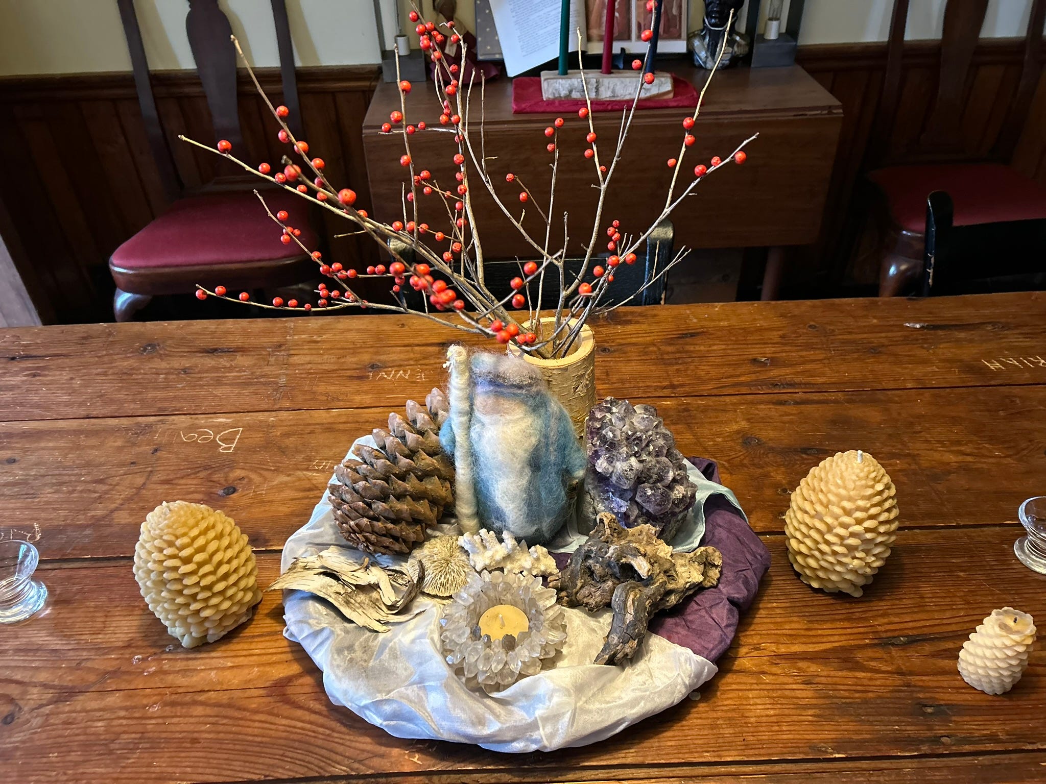 Something I learned to do while working for Waldorf schools over the past years is to create a small centerpiece for the home every season with materials gathered from nature. It’s meant to inspire, ground and bring beauty to those who pass by. It could be on the table where meals are shared, on a windowsill, or a mantel.
